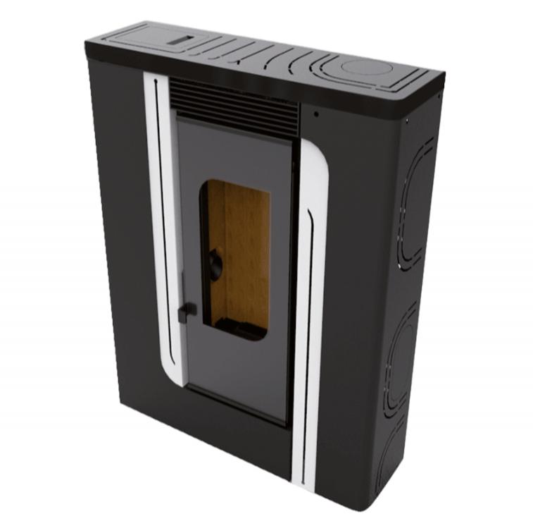 Con sus dimensiones compactas y su diseño elegante, la estufa de leña se integra perfectamente en los espacios más diversos, ofreciendo una solución de calefacción eficaz y estética. El revestimiento de cerámica gris no sólo realza el aspecto de la estufa, sino que también contribuye a una mejor difusión del calor, garantizando un confort óptimo en toda la estancia.